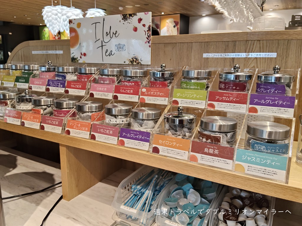 お茶類はこれだけの種類が揃っています。フレーバーティや中国茶などもあり、種類は充分。