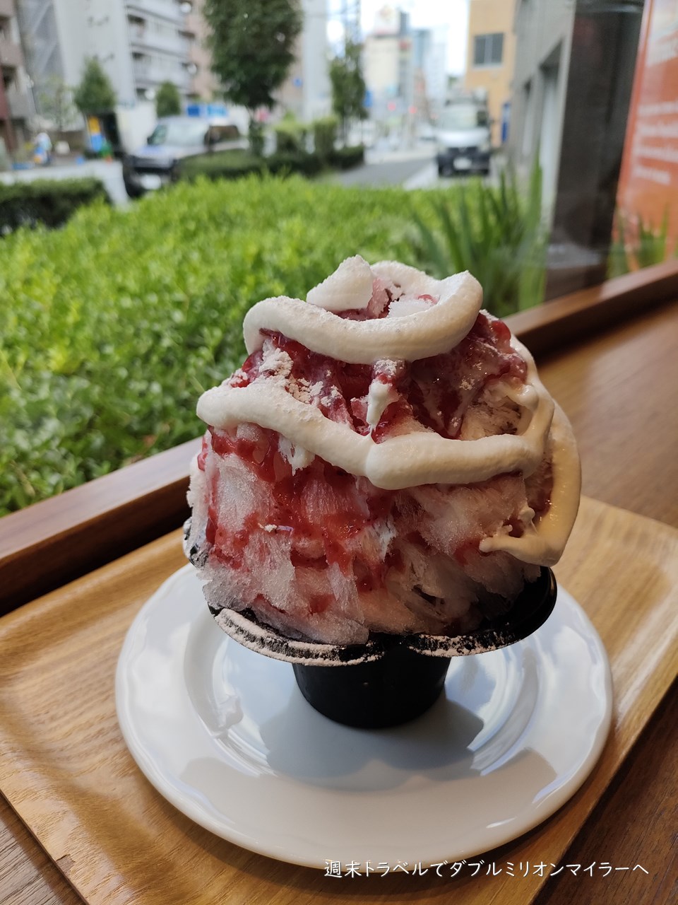 店頭には、かき氷の看板が出ています。パティスリーでかき氷のイメージがなかったのですが、我が家が良く行く曙橋の「ラヴィドゥース」でも夏はかき氷メニューがありますので、最近はパティスリーでかき氷に取り組むお店が増えているのかもしれません。