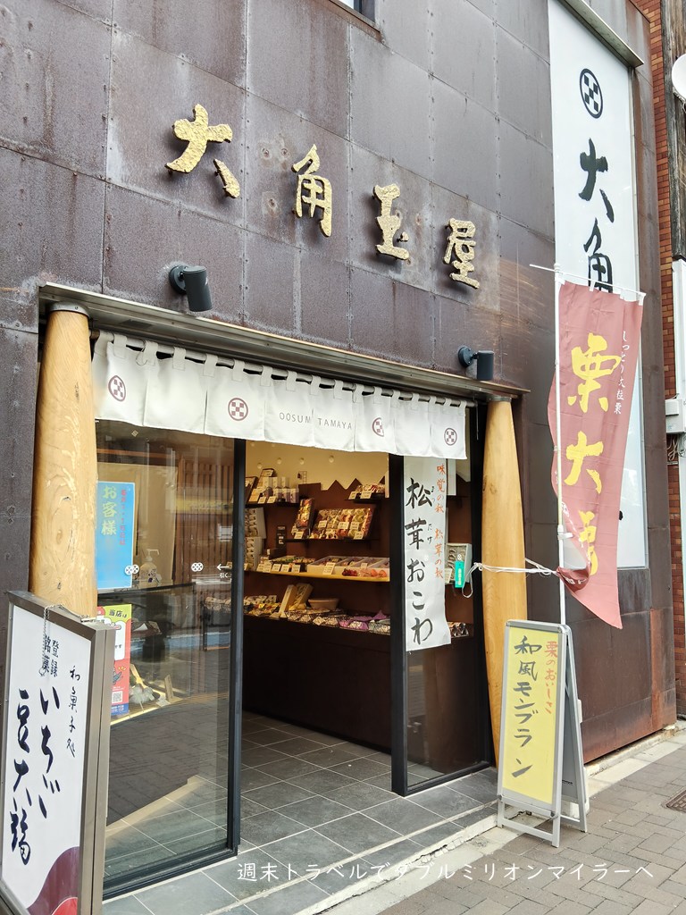 和洋折衷「いちご豆大福」で有名な大角玉屋で、秋限定の「和風モンブラン」