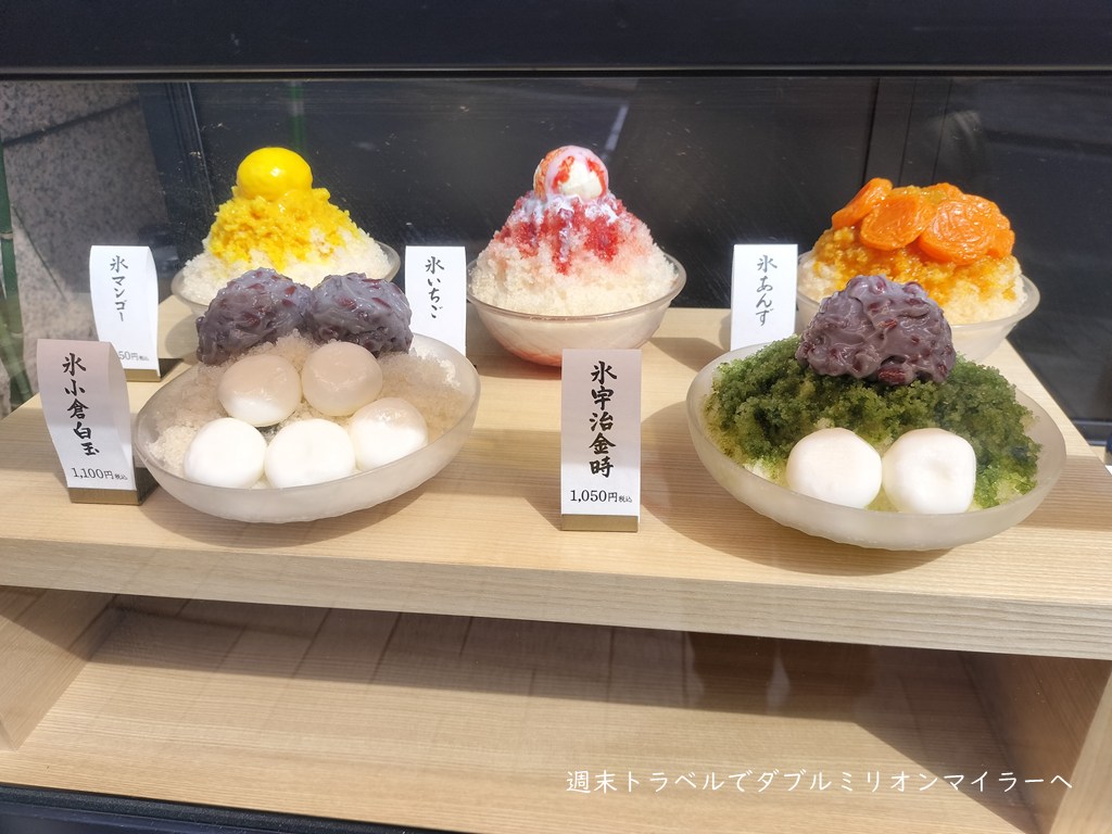この日はまだまだ残暑が続く暑い日、こんな日はかき氷が一番と「宇治金時」と「あんず」の2種類を注文しました。