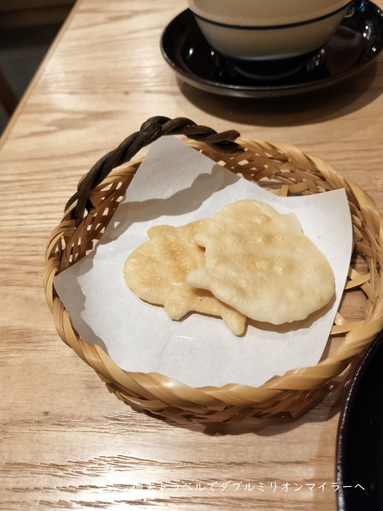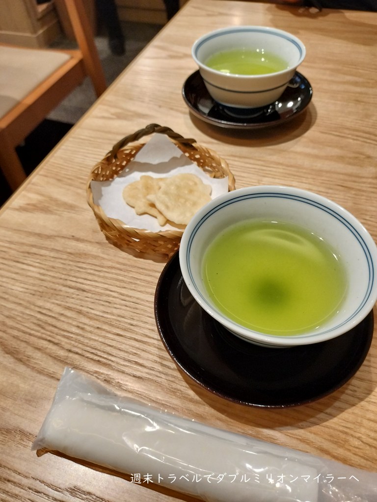席に案内されると、以前と同じように温かいお茶と小さなおせんべいが提供されました。