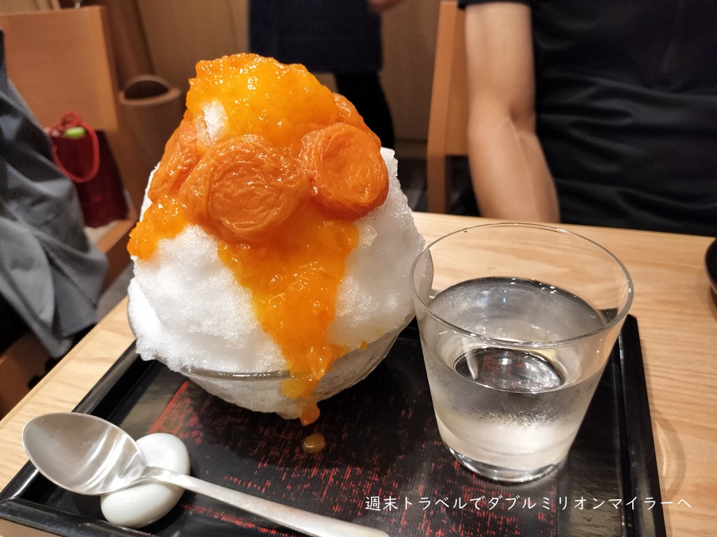 あんずの果肉たっぷり、あんずそのものもたくさん載っていて、食べ応えがあるかき氷でした。