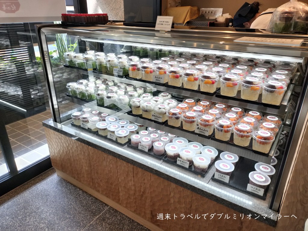 入り口付近では、お持ち帰り用の抹茶ババロアやあんみつの販売もあります。