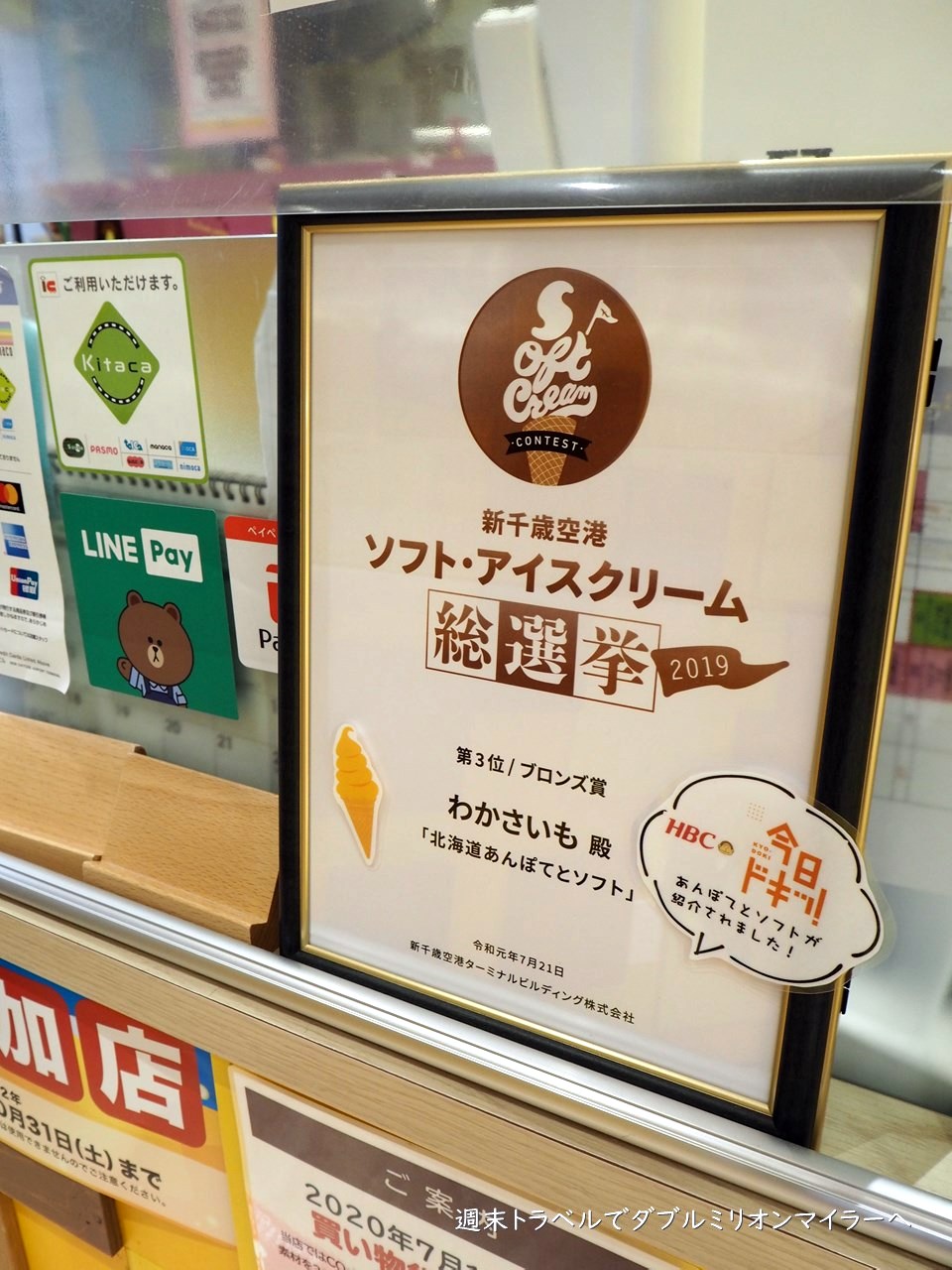 「わかさいも」の「北海道あんぽてとソフト」は新千歳空港のソフトクリーム総選挙で3位に入賞しているようです。