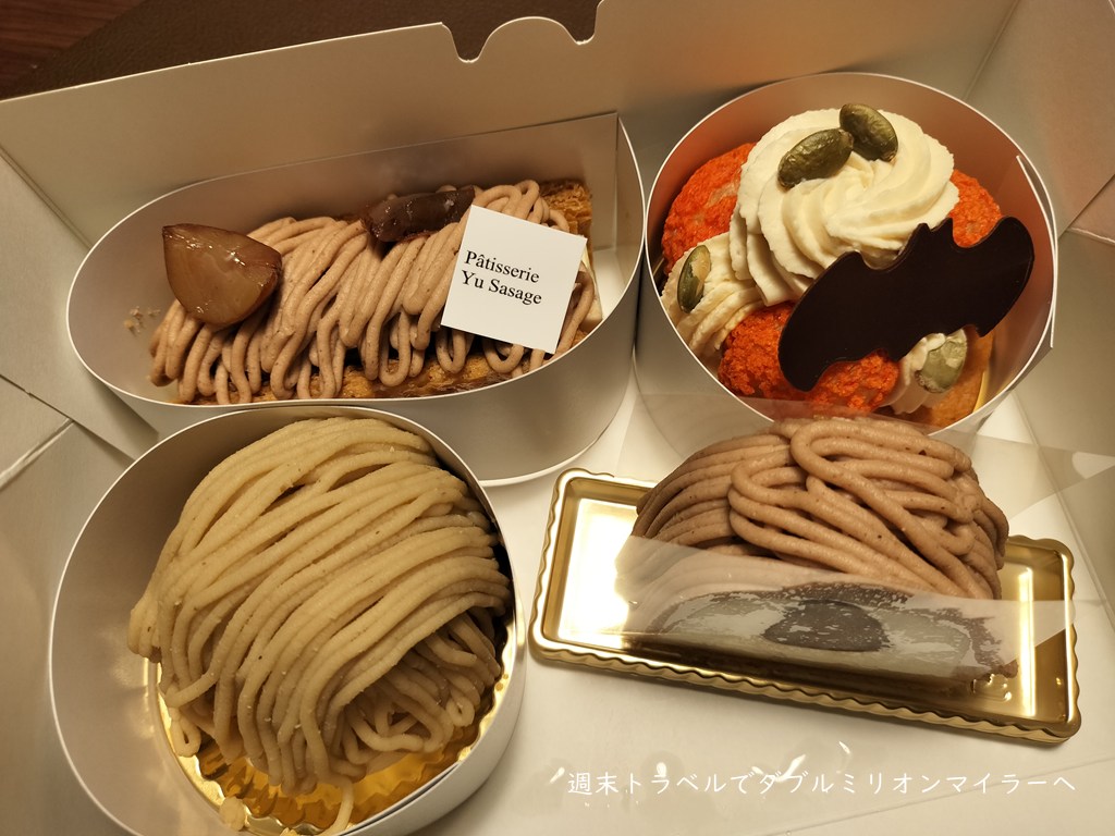 この日は、お取り置きをお願いしたケーキ2個に加え、秋らしい栗とカボチャを使ったケーキ2個の計4個を選びました。