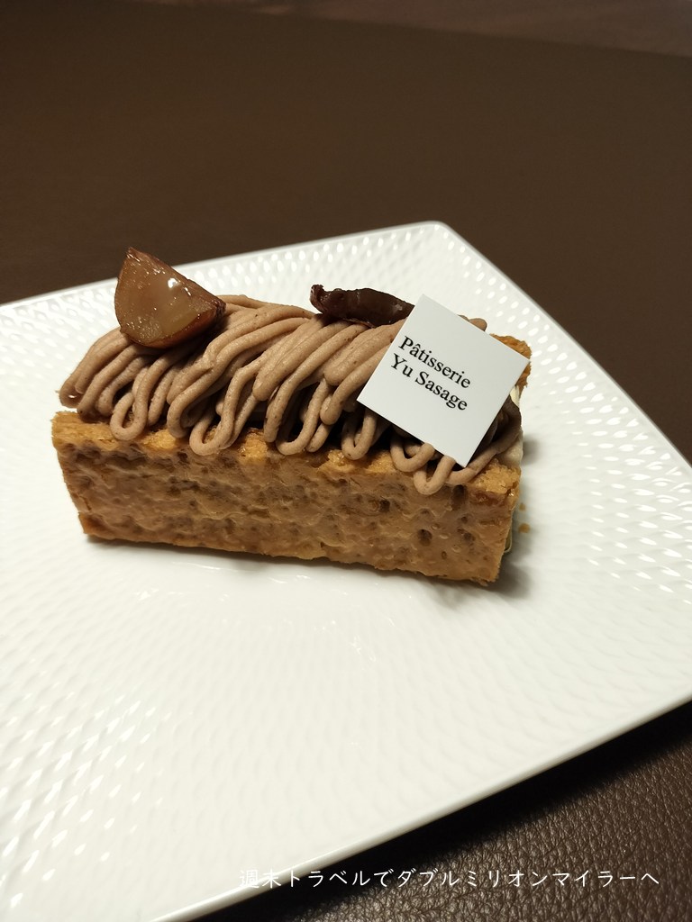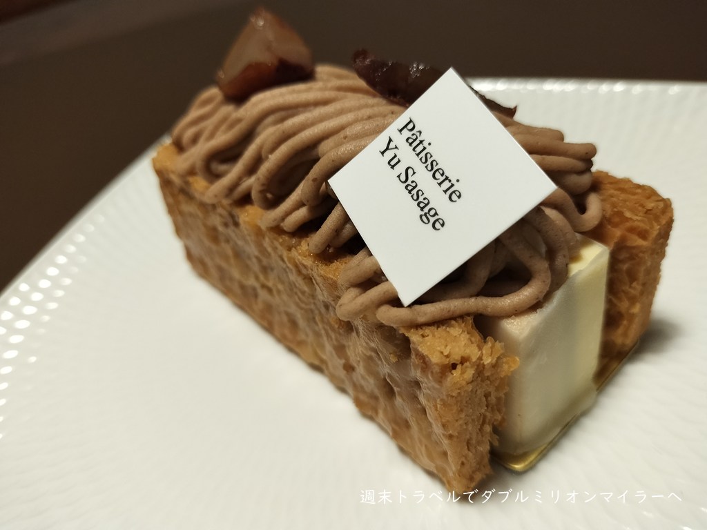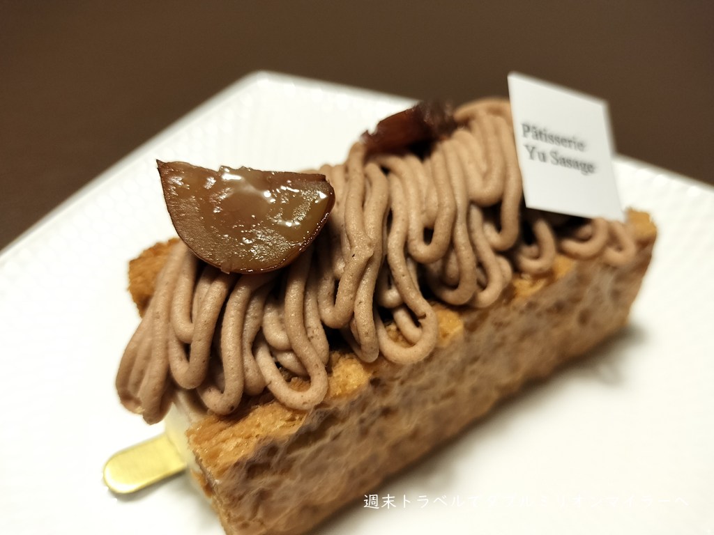 何層にも重なったパイ生地と栗クリームの食感のハーモニーが魅力。口に入れた瞬間に広がる栗の濃厚な風味とパリッとした生地のコントラストが秋らしさを引き立てていました。