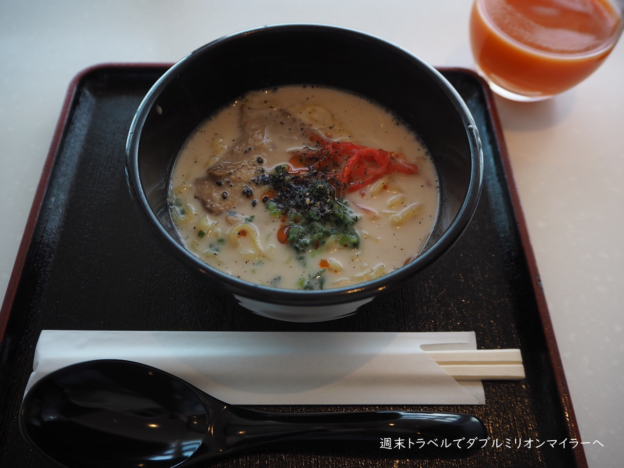夫は、とんこつラーメンをオーダーしていました。そばもラーメンも冷凍麺を使っているので、味は一定レベルを保っています。
