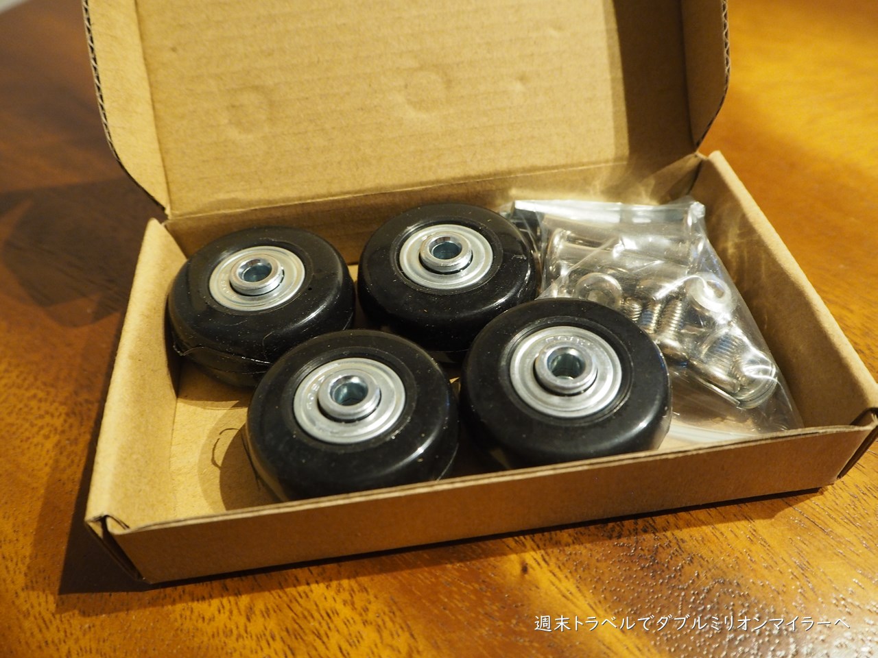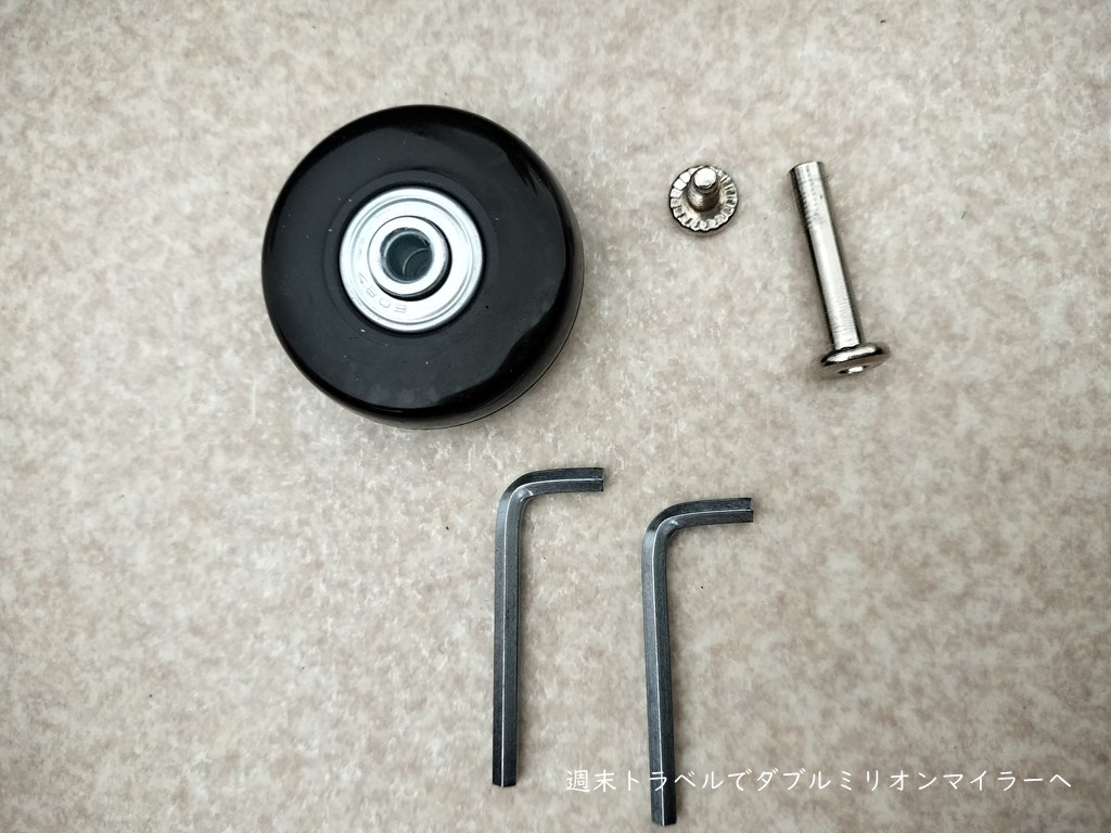 購入したのは、車輪、シャフト、六角レンチが付いた4個セットで900円ほどでした。