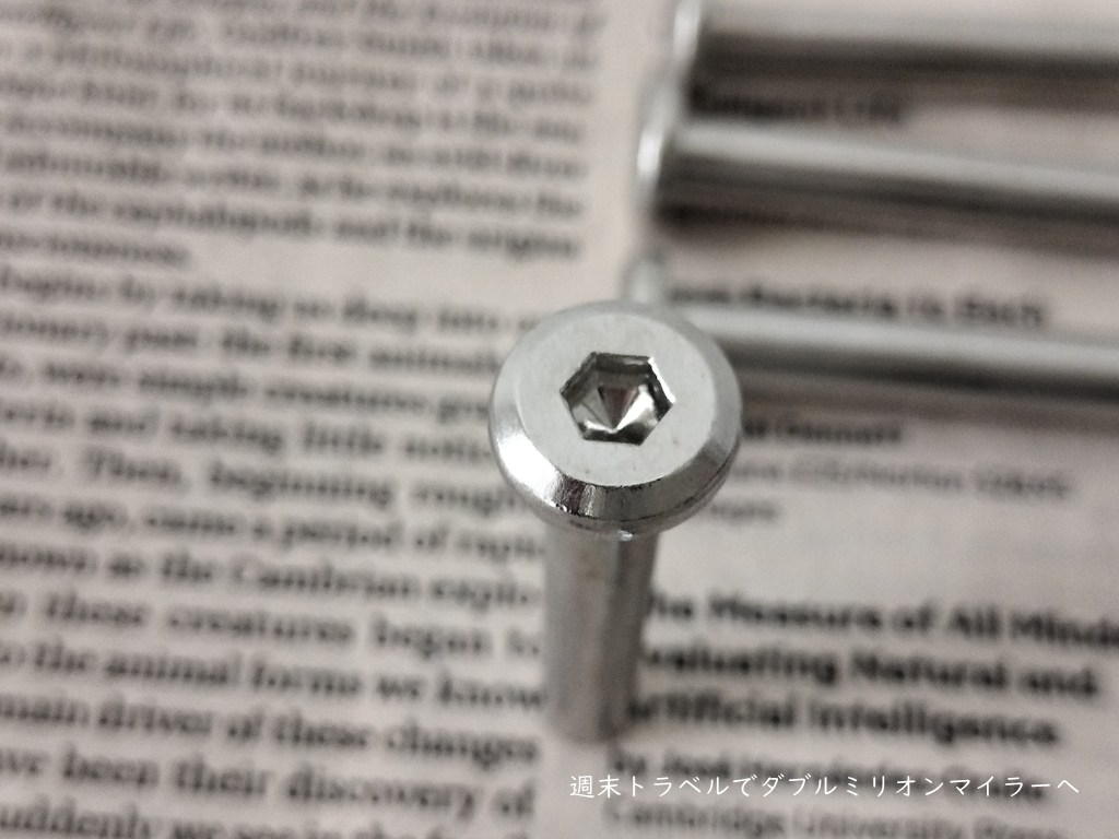 シャフトの頭はこのような六角形、ここにレンチを当てるとねじが回転して締められます。