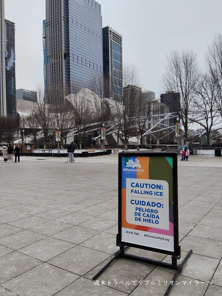 ミレニアムパークにあるビーンズの上には、うっすら雪が積もっていました。冬のシカゴには何度も来ていますが、ビーンズの上に雪が積もっているのを見たのは初めてでした。