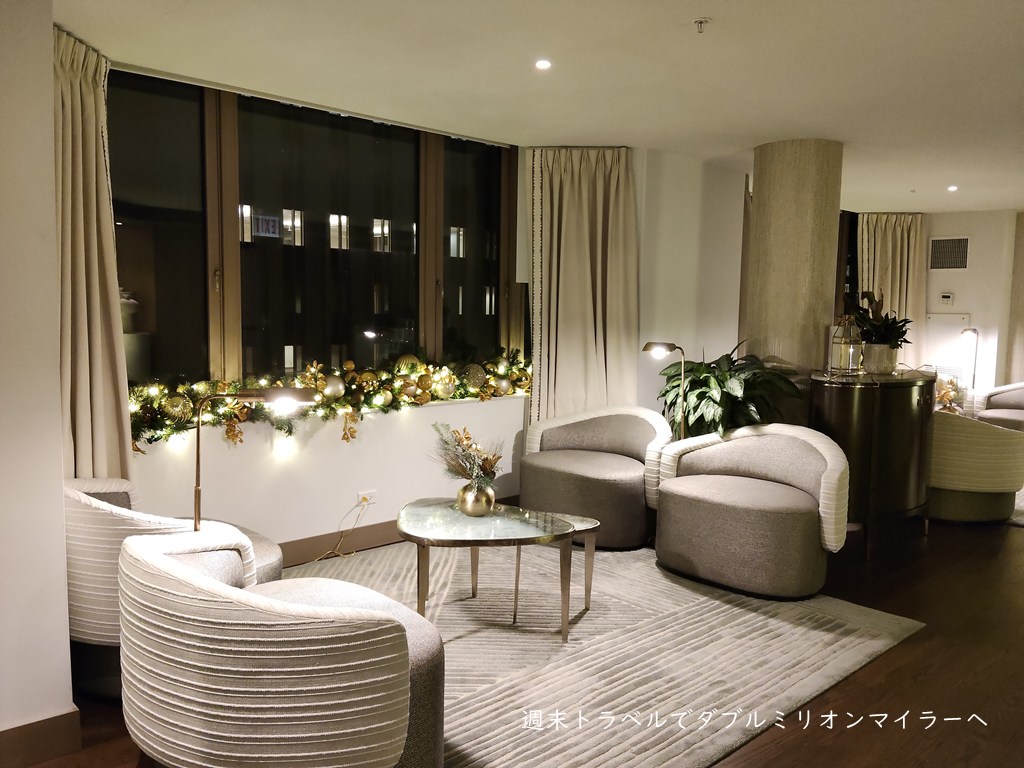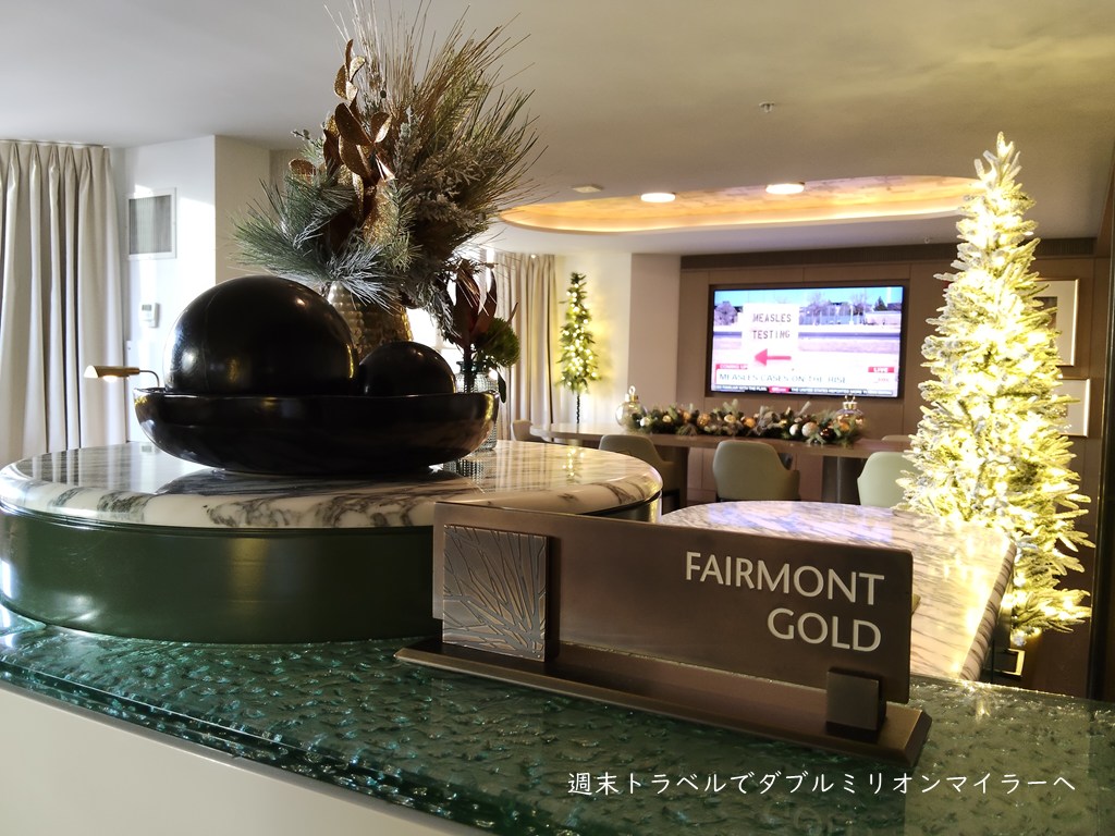 新年に打ちあがる花火を鑑賞するほかは、ホテル滞在を楽しむことを旅行のメインの目的にし、今回はフェアモントシカゴのゴールドルームの予約を入れました。昨年、フェアモントに宿泊し、サービスの良さに感動し今回はゴールドレベルの部屋にしてラウンジライフを満喫。